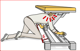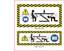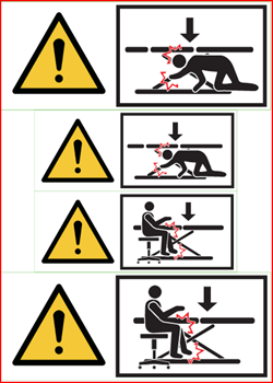 Rote Kreise beschreiben die Gefahr der Verletzungen durch Einklemmen bzw. Quetschungen